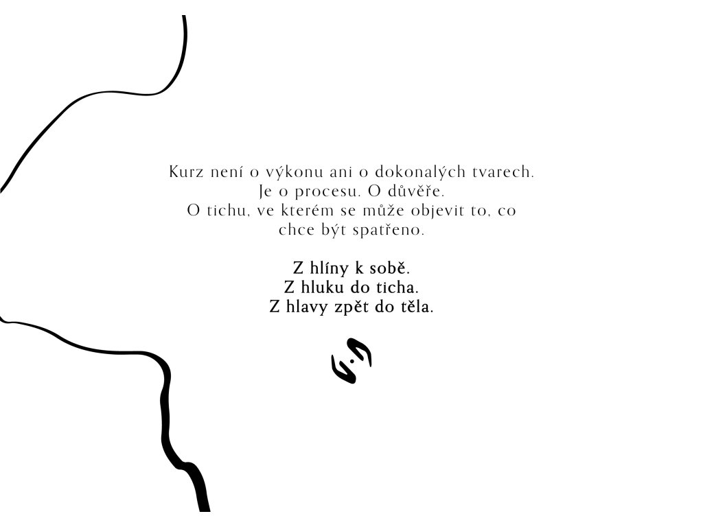 V bezpečném a klidném prostoru se skrze práci s keramickou hlínou vracíme k jednoduchosti. K radosti z tvoření rukama. K naslouchání sobě.